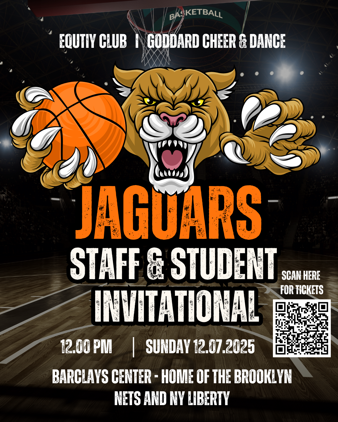 Staff & Student Game at the Barclays Center We’re excited to invite you to the Staff & Student Game at the Barclays Center on Sunday, December 7 at 12:00 PM! Come out to support our Goddard community and enjoy a fun day of basketball, school spirit, and teamwork.